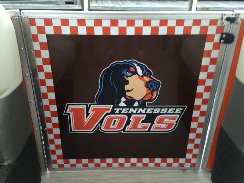 The "Havana Sun" (photos shown in photo gallery) is a perfect example of what we mean by "Custom". Being a huge University of Tennessee fan, the owner of this Bahamas Pontoon Model 270 chose the UT orange and white checkerboard colors for the exterior fence paneling, had us build a custom "T" made for the front and sides, misters to keep everyone cool in the sun, UT graphics placed on both entry doors, our own unique and patented slide, a Lillipad Marine diving board, dual bimini tops, and so much more. Remember, the sky is the limit and every boat we make is tailored to fit your individual needs.