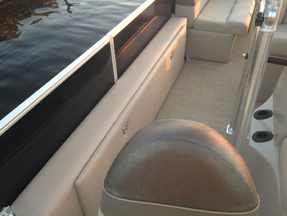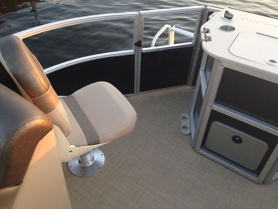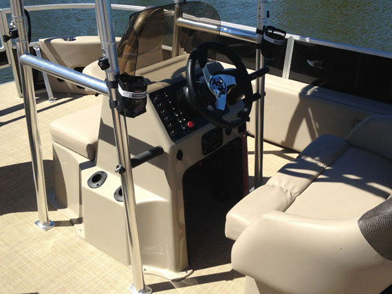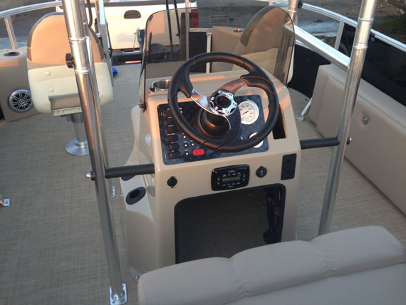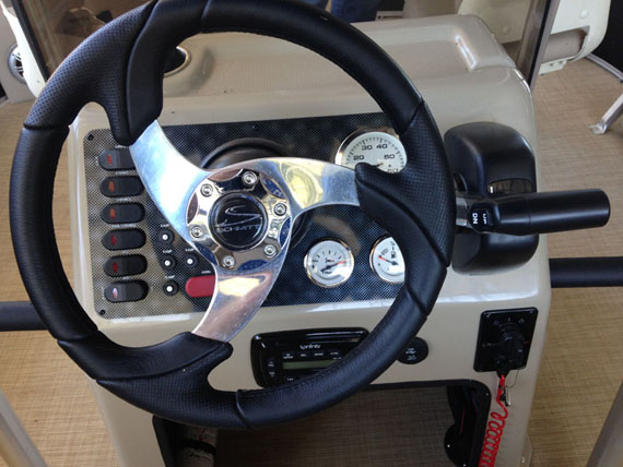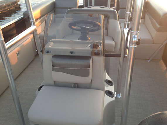 - Center console with oversized Captain's chair and ice cooler storage under seat, removable windscreen, tilt wheel, beverage holder, built in aerated livewell under unique seat integrated into front of console