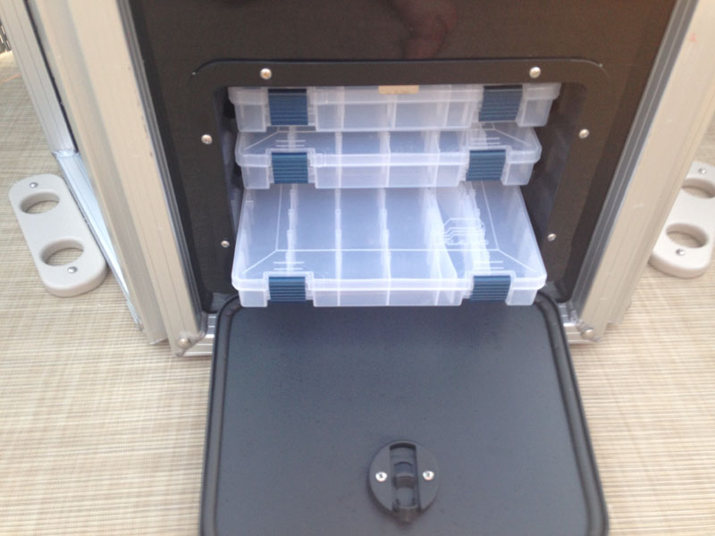 - 3 tackle centers with plano style storage compartments and trays