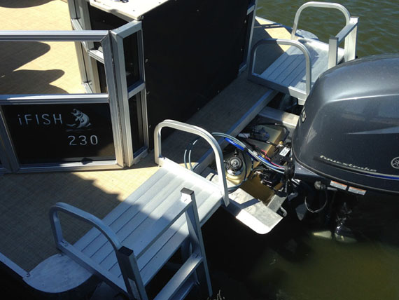 - Front gate built with the space under for a bow mounted trolling motor, pre-wired with trolling motor plug
